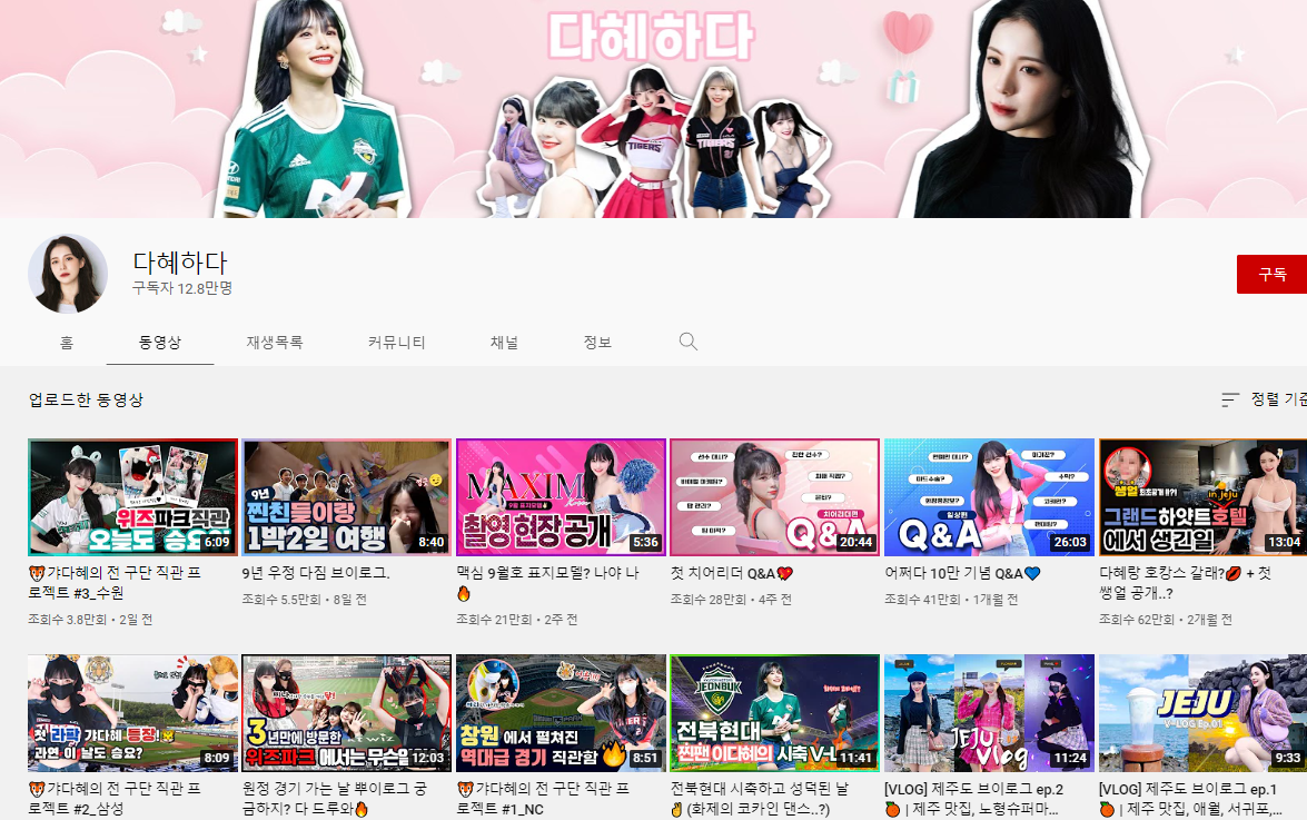 유튜브 채널 '다혜하다'를 통해서 대중들을 만나고 있기도 하고요